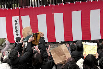 入りの豆がまかれます。福引