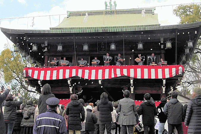 神楽があります。対照的な二つの神社の節分の日をご覧ください。