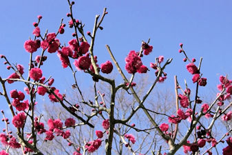 するのは、枚岡梅林の梅の花。種類によって花期に違いがありますが、3月