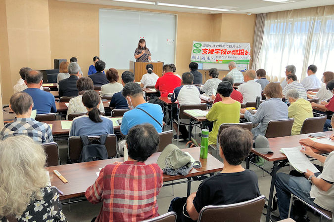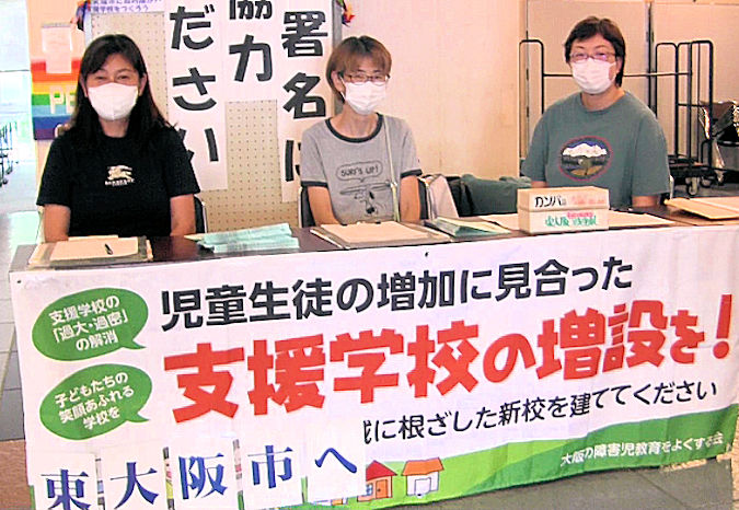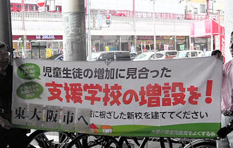 「東大阪市に知的障がい児の支援学校新設を」と訴える保護者のみなさん